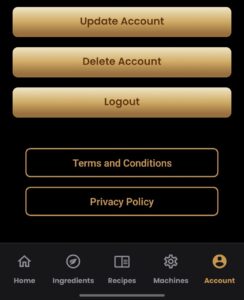 App-related user content you created (Ingredients, Recipes, Dispense Event Logs, Batches)